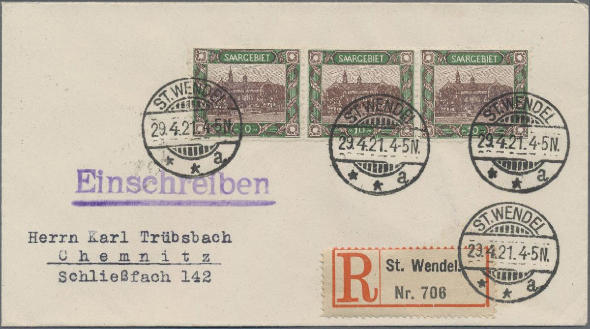 | Zusatzinformationen und Suchstichworte: | Christoph Gärtner 55. Auktion 20. - 24. Februar 2023 Los 5854 D Saar 1921, 10 M grün/braun, waagerechter Dreierstreifen, übergehend entwertet "ST.WENDEL 29.4.21" auf Einschreibbrief nach Chemnitz. Rückseitig Ankunftsstempel (Halb) und violettes Siegel der "Kontrollstelle des Reichsbeauftragten für die Überwachung der Ein- und Ausfuhren in Chemnitz" Ausruf 200,00 EUR |