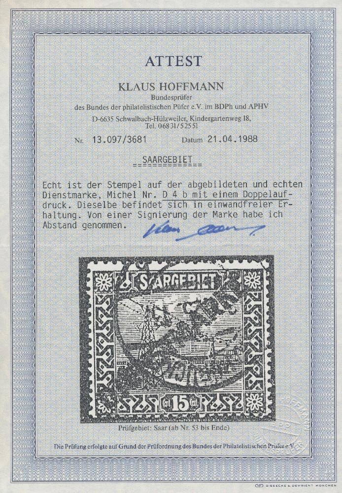 | Prüfgebiet: | Saargebiet Dienstmarken |