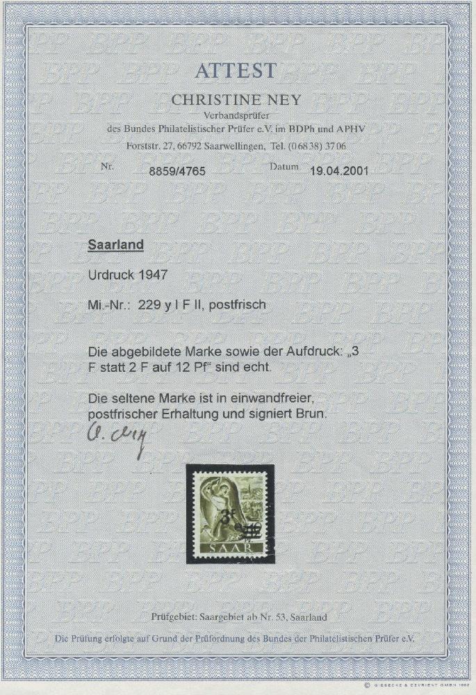 | Prüfer: | Ney, Christine (BPP (Bund Philatelistischer Prüfer)) |