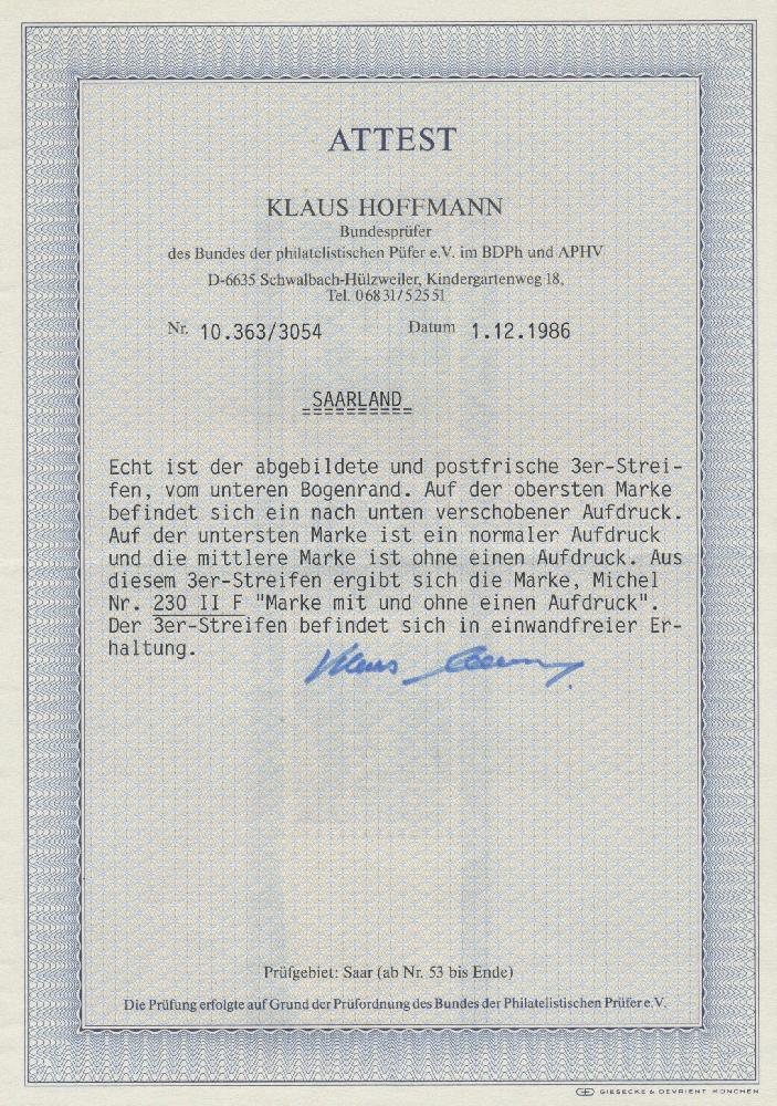 | Prüfgebiet: | Saarland (ab Mi-Nr. 206) |