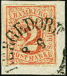 | Zusatzinformationen und Suchstichworte: | 380. Auktion Heinrich Köhler Auktionstermin 25.03.2023 Los 46 Hamburg: 1859, 2 Schilling rot, farbfrisch, unten kleine Berührung durch Randkerbe, sonst voll- bis breitrandig, mit alleinige Entwertung durch sauber aufgesetzten Ortsstempel "BERGEDORF 8 6" auf Briefstück. Diese Marke ist mit bergedorfer Entwertung außerordentlich selten; mit Ortsstempel haben wir nur noch 2 weitere Einzelstücke und einem Brief registriert. Signiert Köhler sowie Fotoattest Dr. Mozek BPP (2022) Provenienz: 88. Heinrich Köhler-Auktion (1935) John Boker jr. (1987) Ausruf 800,00 EUR Zuschlag 1.700,00 EUR (aus der Sammlung Erivan Haub) (gleiche Attest-Nr. andere Marke Interne Nr. 020718) |