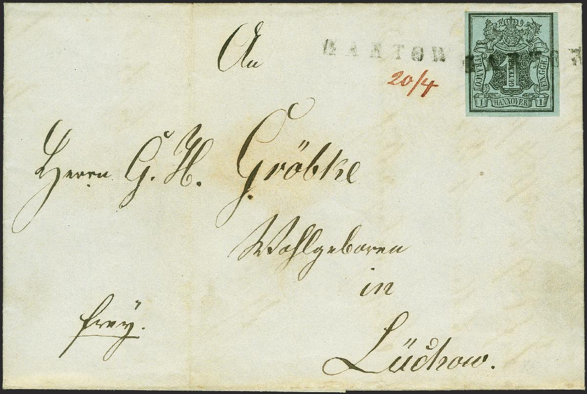 | Zusatzinformationen und Suchstichworte: | 380. Auktion Heinrich Köhler Auktionstermin 25.03.2023 Los 78 1 Gutegroschen schwarz auf blaugrau, noch voll- bis breitrandig, mit sauber auf- und nebengesetztem Langstempel "GARTOW" mit handschriftlich zugefügtem Datum "20/4" (1851) auf komplettem Faltbrief nach Lützow. Fotoattest Jäschke-L. BPP (2022) Ausruf 150,00 EUR Zuschlag 560,00 EUR (aus der Sammlung Erivan Haub) |