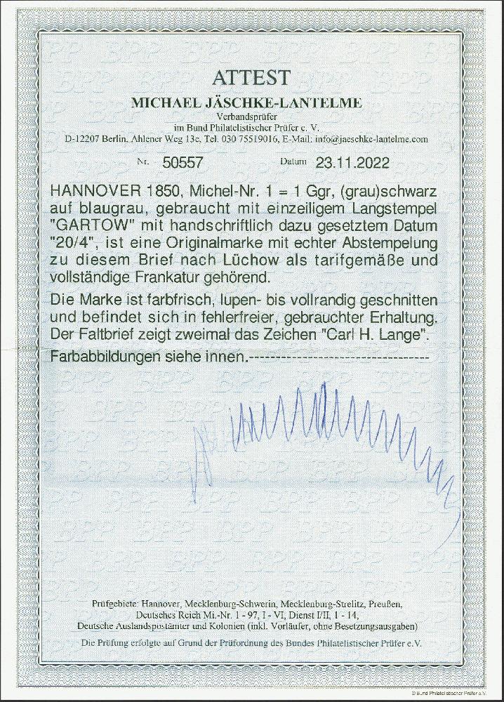 | Prüfgebiet: | Altdeutschland Hannover |