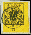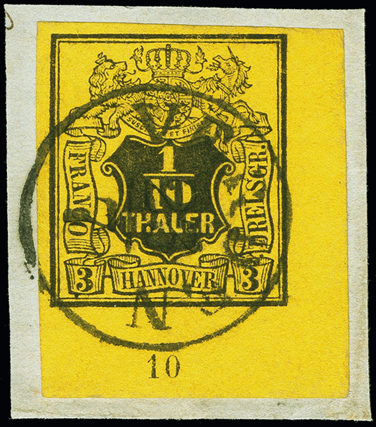 | Zusatzinformationen und Suchstichworte: | 380. Auktion Heinrich Köhler Auktionstermin 25.03.2023 Los 81 1/10 Thaler schwarz auf gelb, allseits breitrandige rechte untere Bogenecke mit Reihenzähler "10", mit sauber aufgesetztem schwarzen Einkreisstempel "VERDEN 23/7" auf Briefstück. Sehr schöne und tadellose Erhaltung. Fotobefund Jäschke-L. BPP BPP (2022) Ausruf 150,00 EUR Zuschlag 320,00 EUR (aus der Sammlung Erivan Haub) |