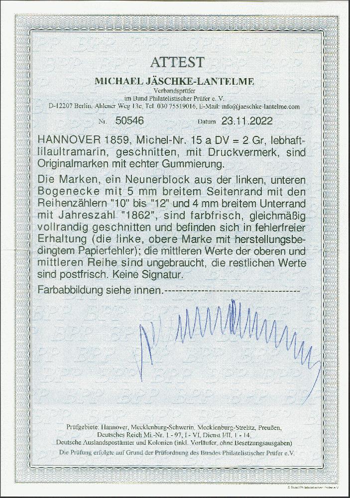 | Prüfer: | Jäschke-Lantelme, Michael (BPP (Bund Philatelistischer Prüfer)) |