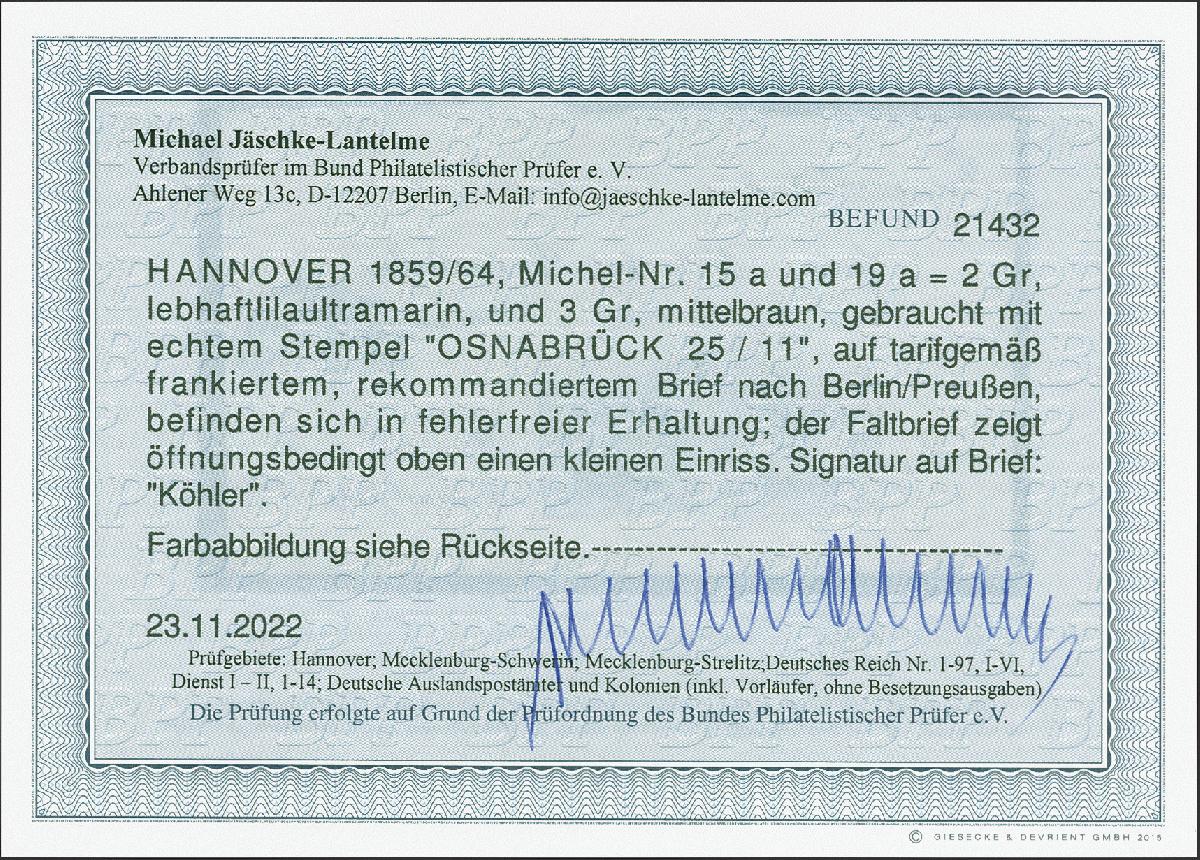 | Prüfer: | Jäschke-Lantelme, Michael (BPP (Bund Philatelistischer Prüfer)) |