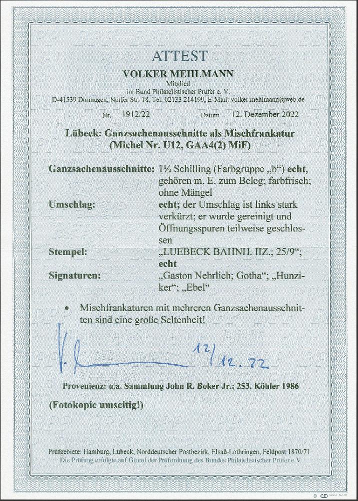 | Prüfer: | Mehlmann, Volker (BPP (Bund Philatelistischer Prüfer)) |