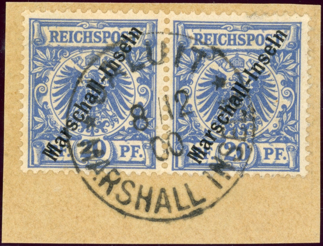 | Zusatzinformationen und Suchstichworte: | Klüttermann - 6. Auktion 27. Juli - 4. August 2023 Los 6068 Deutsche Kolonien Marshall Inseln 20 Pfg. Jaluit Ausgabe im waager. Paar a. Luxusbfst. mit zentr. 2. St. JALUIT 8/12 00, FB Jäschke-L. (2022) Ausruf 160,00 EUR |