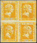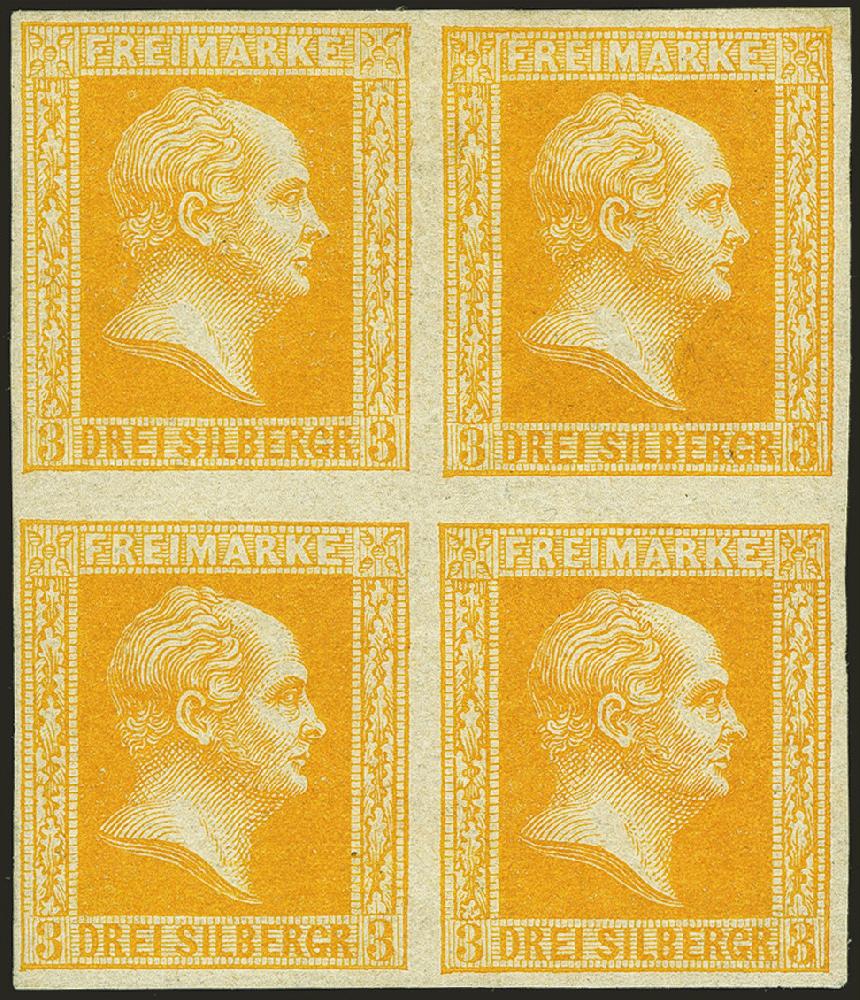 | Zusatzinformationen und Suchstichworte: | 380. Auktion Heinrich Köhler Auktionstermin 25.03.2023 Los 167 3 Silbergroschen gelblichorange im Viererblock, schöne frische und tiefe Farbe, allseits voll-bis breitrandig, ungebraucht mit frischem Originalgummi. Die beiden rechten Werte winzige leicht helle Stellen, sonst tadellos. Eine seltene Einheit in frischer Erhaltung. Fotoattest Jäschke-L. BPP (2022) Ausruf 1.500,00 EUR Zuschlag 1.800,00 EUR (aus der Sammlung Erivan Haub) |