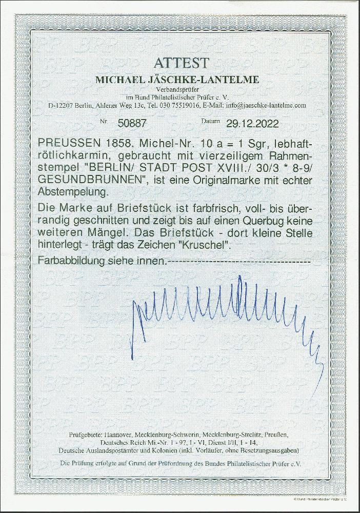 | Prüfer: | Jäschke-Lantelme, Michael (BPP (Bund Philatelistischer Prüfer)) |