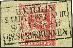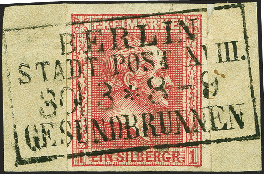 | Zusatzinformationen und Suchstichworte: | 380. Auktion Heinrich Köhler Auktionstermin 25.03.2023 Los 179 1 Silbergroschen karmin mit vierzeiligem Rahmenstempel "BERLIN STADTPOST XIX 13/2 PANKOW" auf kleinem Stadtbriefchen mit nebengesetztem "Franco Stadtbrf.". Schöne und einwandfreie Erhaltung. Ein äußerst seltener Vorort-Stempel. Fotoattest Jäschke-L. BPP (2023) Ausruf 500,00 EUR Zuschlag 1.350,00 EUR (aus der Sammlung Erivan Haub) |