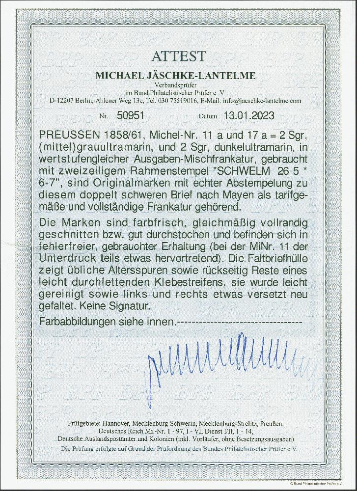 | Prüfer: | Jäschke-Lantelme, Michael (BPP (Bund Philatelistischer Prüfer)) |