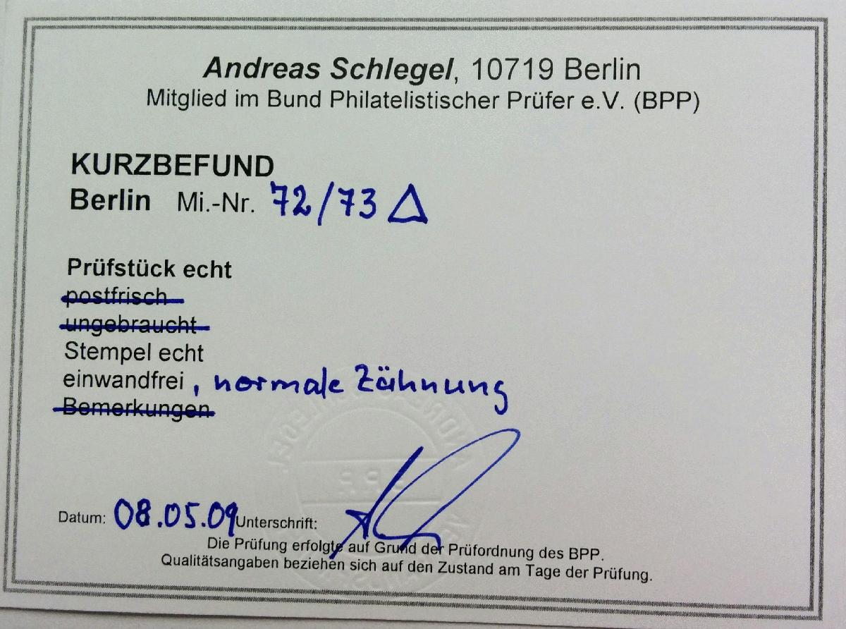 | Prüfer: | Schlegel, Andreas (BPP (Bund Philatelistischer Prüfer)) |