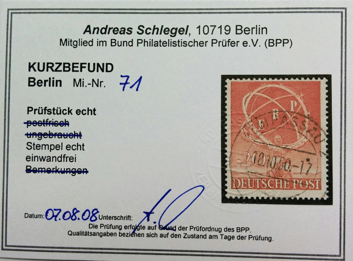 | Prüfer: | Schlegel, Andreas (BPP (Bund Philatelistischer Prüfer)) |
