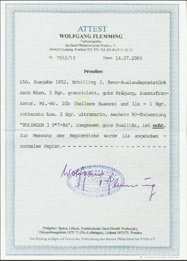 | Prüfer: | Flemming, Wolfgang (BPP (Bund Philatelistischer Prüfer)) |