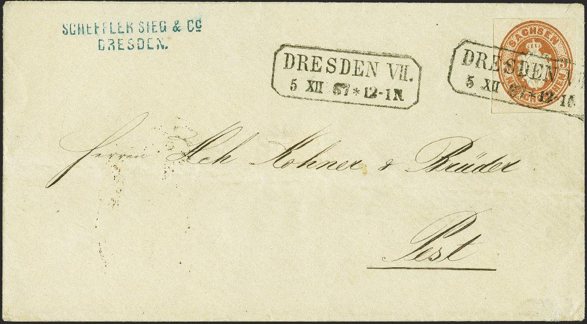 | Zusatzinformationen und Suchstichworte: | 380. Auktion Heinrich Köhler Auktionstermin 25.03.2023 Los 247 Ganzsachenausschnitt Wappen 3 Neugroschen braun, voll- bis breitrandig viereckig geschnitten, mit klar auf- und nebengesetztem Rahmenstempel "DRSDEN VII 5 XII 67" auf Briekuvert nach Pest in Ungarn. Außerhalb der Frankatur waagerechte Faltung, sonst einwandfreie Erhaltung. Fotobefund Vaatz BPP (2022) Ausruf 100,00 EUR Zuschlag 200,00 EUR (aus der Sammlung Erivan Haub) |