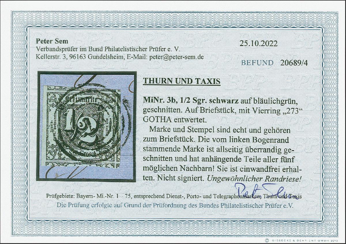 | Prüfgebiet: | Altdeutschland Thurn und Taxis |