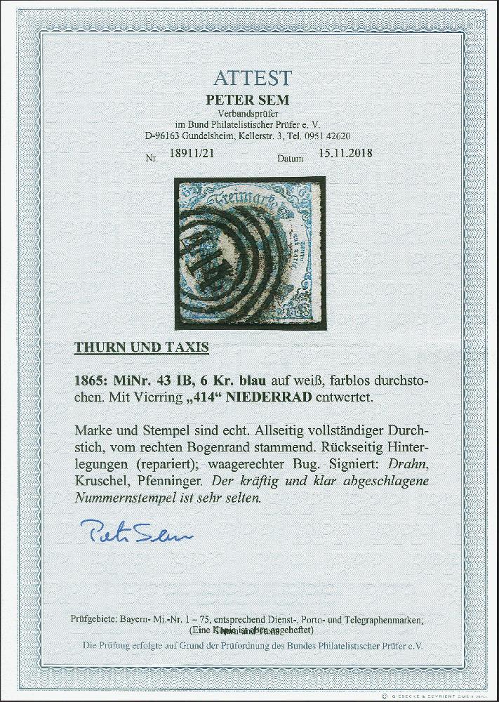 | Prüfgebiet: | Altdeutschland Thurn und Taxis |