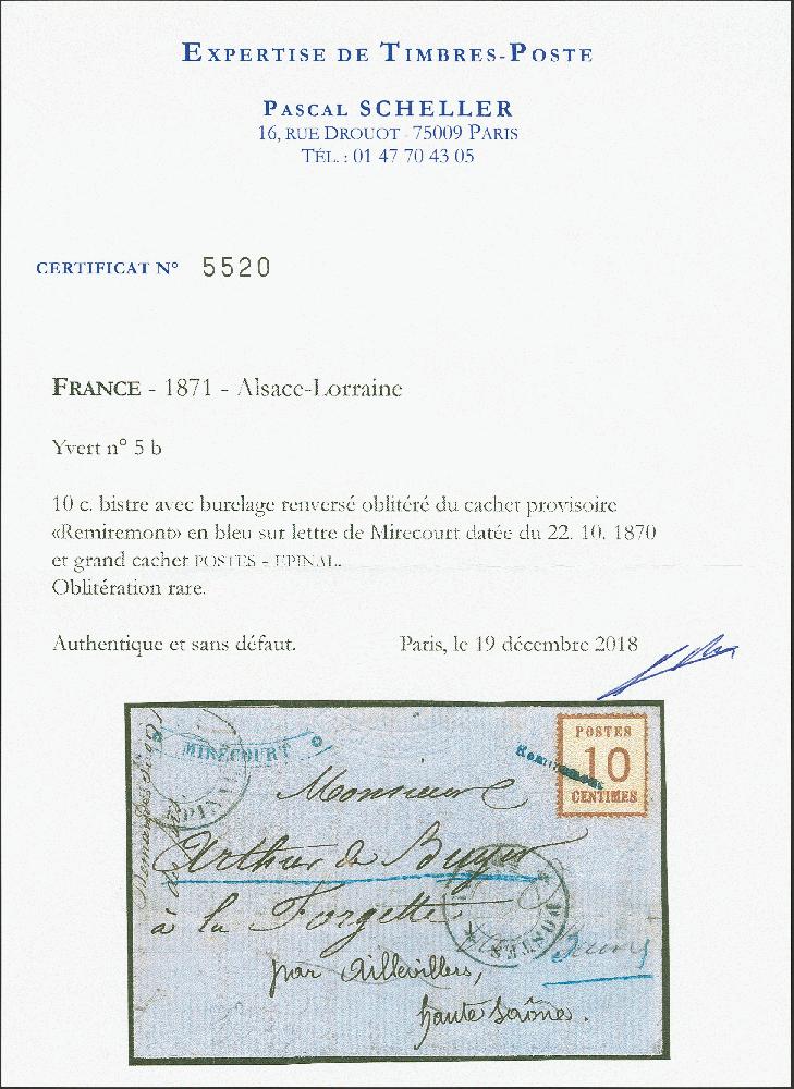 | Prüfgebiet: | Norddeutscher Postbezirk 1870 - 1871 Elsass-Lothringen |