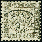 | Zusatzinformationen und Suchstichworte: | 380. Auktion Heinrich Köhler Auktionstermin 23.03.2023 Los 6006 1 Kreuzer silbergrau, farbfrisch und einwandfrei gezähnt, sauber entwertet durch Doppelkreisstempel "SAECKINGEN 8 APR. ". Schöne und tadellose Erhaltung. Fotoatteste Brettl BPP (1995) und Stegmüller BPP (2022) Ausruf 800,00 EUR |