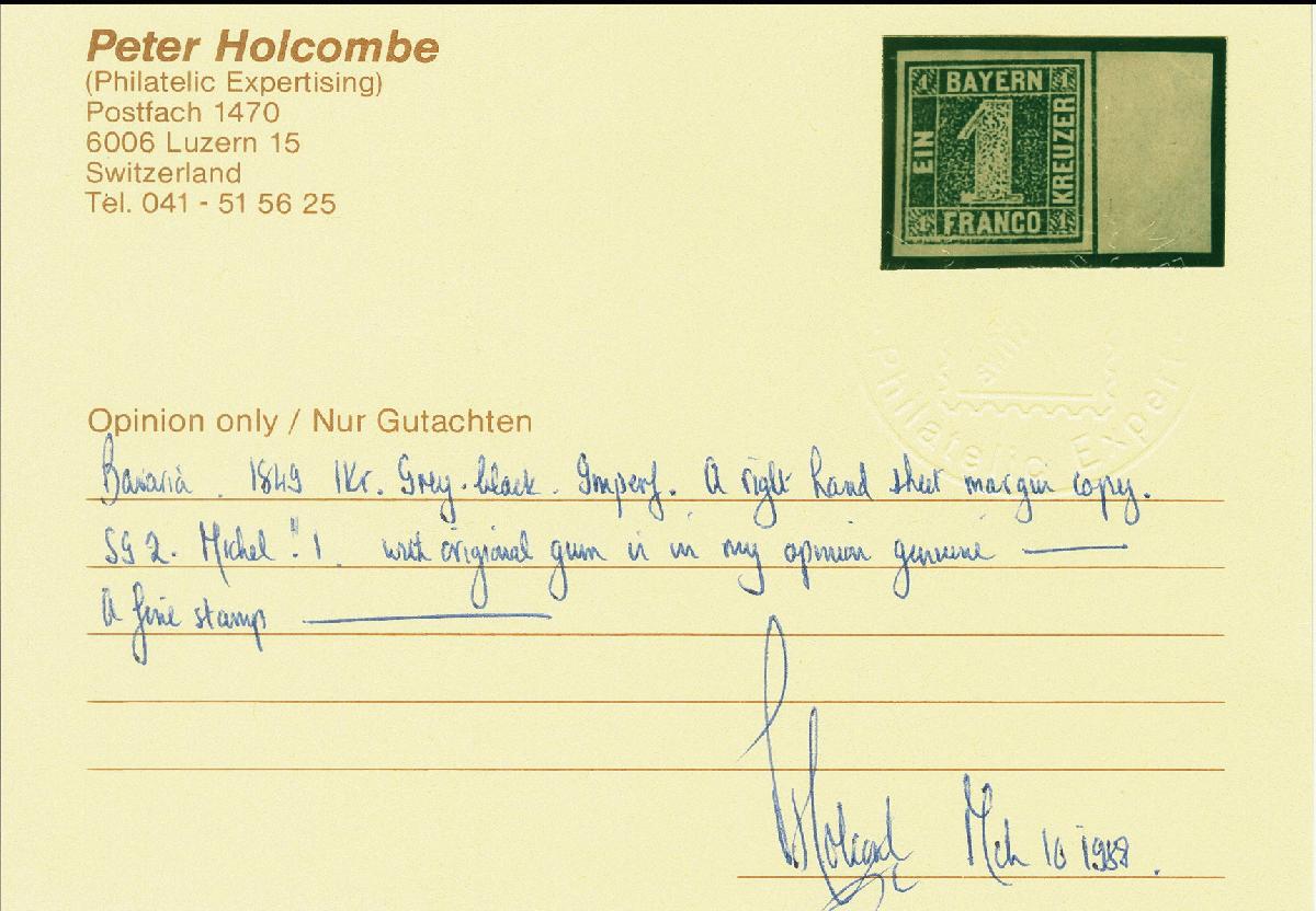 | Zusatzinformationen und Suchstichworte: | 380. Auktion Heinrich Köhler Auktionstermin 23.03.2023 Los 6011 1 Kreuzer grauschwarz, Platte 1, Makulaturdruck, farbfrisch und allseits breitrandig, rechts mit ca. 13 mm Bogenrand, ungebraucht mit Originalgummi, tadellos. Signiert Hermann und Holcombe, Fotoattest Stegmüller BPP (2022) Ausruf 300,00 EUR |