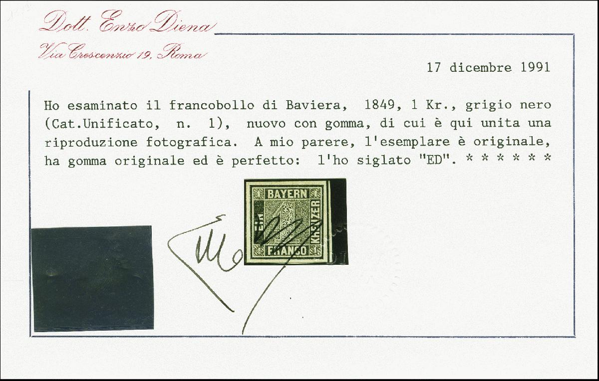 | Zusatzinformationen und Suchstichworte: | 380. Auktion Heinrich Köhler Auktionstermin 23.03.2023 Los 6013 1 Kreuzer grauschwarz, Platte 1, mit Plattenfehler 'Ansatz am 2. E von KREUZER' farbfrisch und allseits breitrandig, rechts mit durchgehender Zwischenlinie, ungebraucht mit Originalgummi, tadellos. Mehrfach signiert und Fotoattest Stegmüller BPP (2022) Ausruf 500,00 EUR |