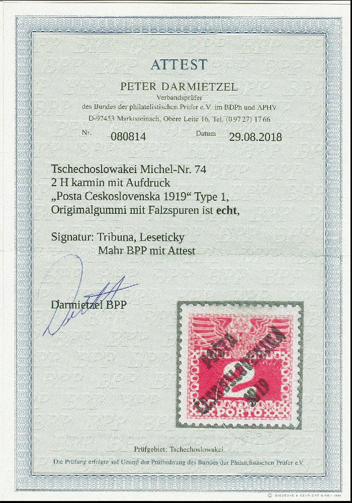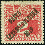 | Zusatzinformationen und Suchstichworte: | 380. Auktion Heinrich Köhler Auktionstermin 20.03.2023 Los 1029 Overprint on Austrian postage due stamps: 1908/13, 2 h. carmine, unused, a fine copy of this incredibly rare stamp, with only 75 printed, signed Lešetický Ustredna, Tribuna and Mahr BPP with certificate (1982) and certificate Darmietzel BPP (2018) Ausruf 1.000,00 EUR |