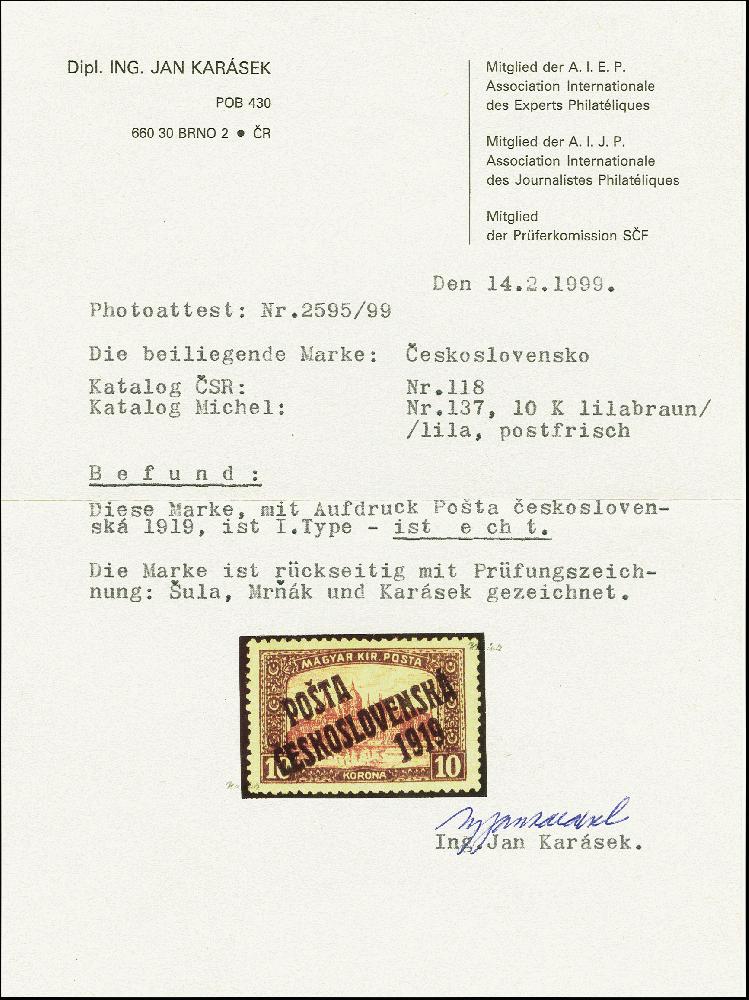 | Prüfer: | Karásek, Jan (AIEP (Association internationale des experts en philatélie)) |