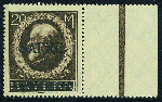 | Zusatzinformationen und Suchstichworte: | Gert Müller 117. Auktion 23. Februar 2023 DIE KÖNIGIN DER SAAR: 20 Mk. Bayern-Sarre mit Abart "FETTER KONTROLLSTRICH" herrlich farbfrisch, sehr gut gezähnt mit breitem rechtem Bogenrand, nahezu postfr. mit Originalgummierung. Die Gesamtauflage belief sich auf lediglich 16 Stück, wovon ein Exemplar seit dem II. Weltkrieg verschollen ist. Mit der Aufdruckabart handelt es sich um ein spektakuläres Unikat. Diese Briefmarke gelangte nicht zur Ausgabe, sondern wurde nur an hochrangige Personen verteilt. Es handelt sich hierbei um eine der spektakulärsten und größten Raritäten der Deutschland-Philatelie. Das hier angebotene Stück zeichnet sich durch seine hervorragende Qualität aus, ohne die sonst bei dieser Ausgabe üblichen Knitter. Eine Welt-Rarität und die Krönung jeder Saar-Sammlung! Fotoatteste Dr. Dub (1937), Pascal Scheller (2010), Calves/Jacquart (2011) und "DIE QUALITÄT IST EINWANDFREI" Braun BPP(2012) Zuschlag 108.000,00 EUR |