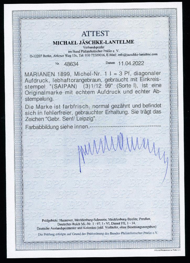 | Prüfgebiet: | Deutsche Kolonien Marianen |