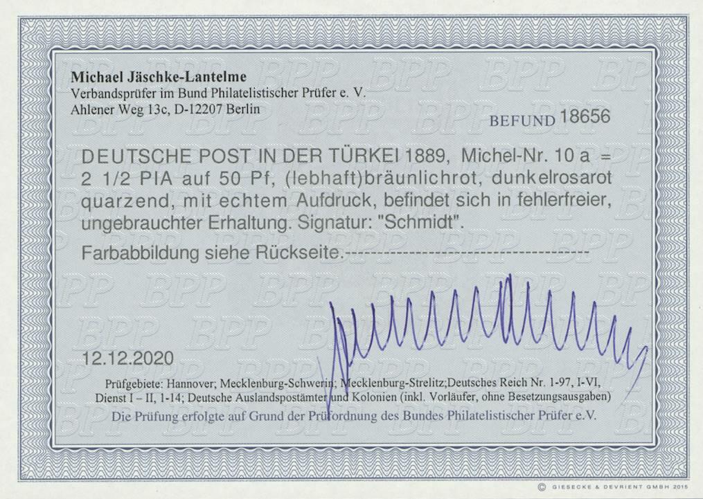 | Prüfgebiet: | Deutsche Auslandspostämter Türkei |