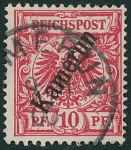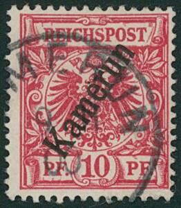| Zusatzinformationen und Suchstichworte: | Ulrich Felzmann 177. Auktion 8. - 11. März 2023 Los 1697 Deutsche Kolonien Kamerun 10 Pfg Krone/Adler lilarot, hellzinnober quarzend, gestempelt KAMERUN 9/11 00 in fehlerfreier Prachterhaltung, Fotobefund Jäschke-L. BPP, € 280,- Zuschlag 100,00 EUR |