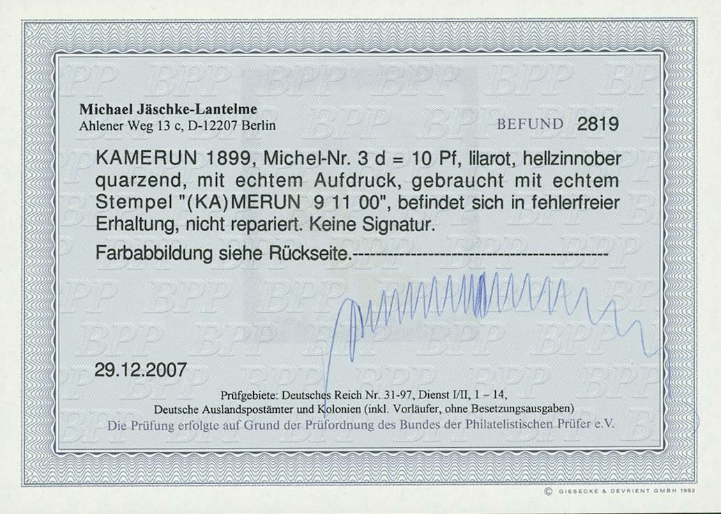 | Prüfgebiet: | Deutsche Kolonien Kamerun |