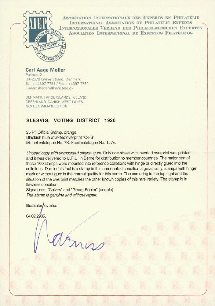 | Prüfer: | Möller, Carl Aage (AIEP (Association internationale des experts en philatélie)) |