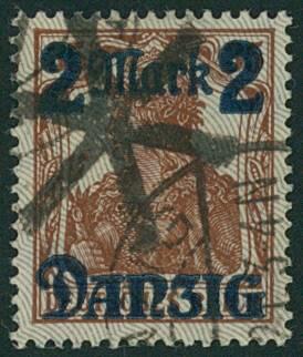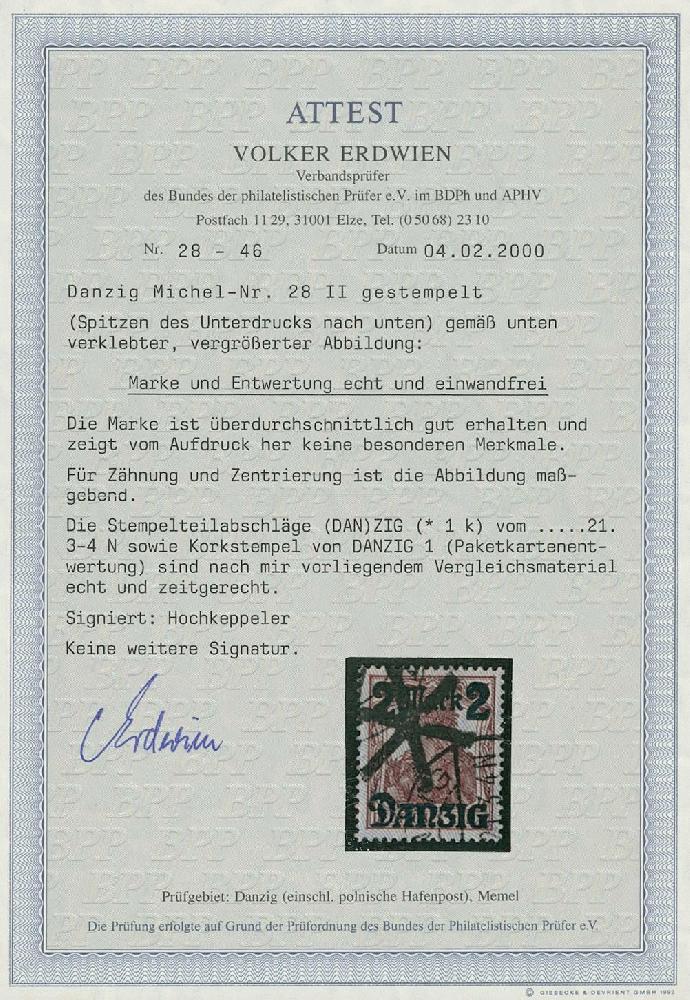 | Zusatzinformationen und Suchstichworte: | Ulrich Felzmann 177. Auktion 8. - 11. März 2023 Los 1800 Danzig 2 Mk auf 35 Pfg Germania "Spitzen abwärts", zeitgerecht entwertet mit Sicherungsstempel sowie K1 DANZIG 1 in einwandfreier Prachterhaltung, Fotoattest Erdwien BPP "... einwandfrei", € 700,- Ausruf 150,00 EUR |