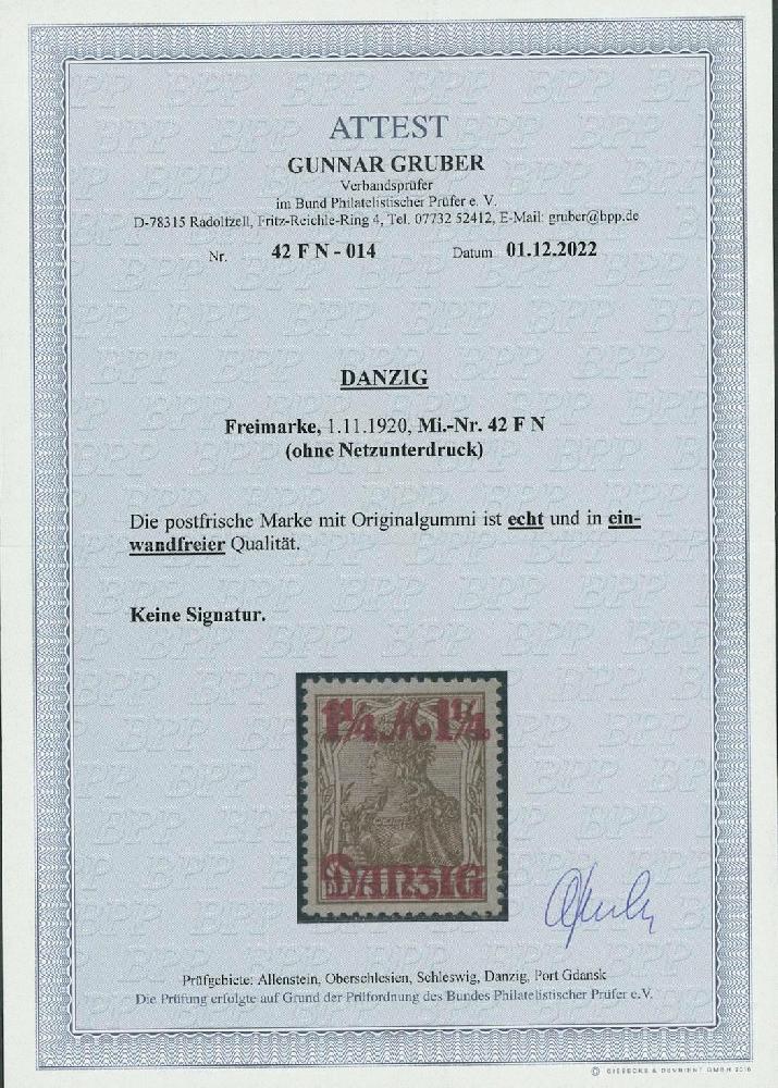 | Prüfer: | Gruber, Gunnar (BPP (Bund Philatelistischer Prüfer)) |