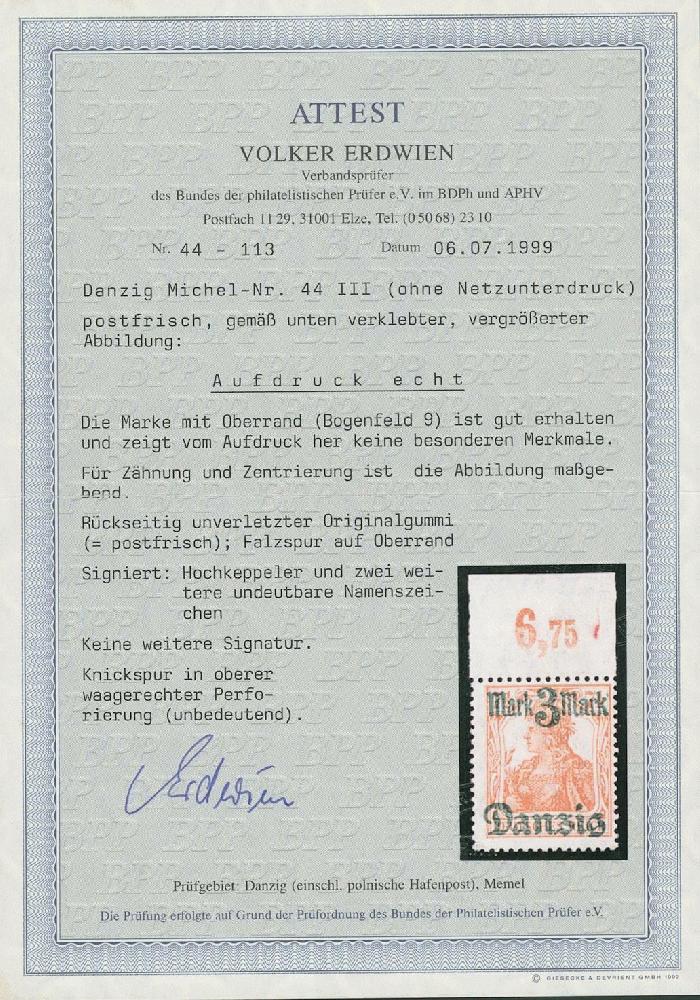 | Prüfer: | Erdwien, Volker (BPP (Bund Philatelistischer Prüfer)) |