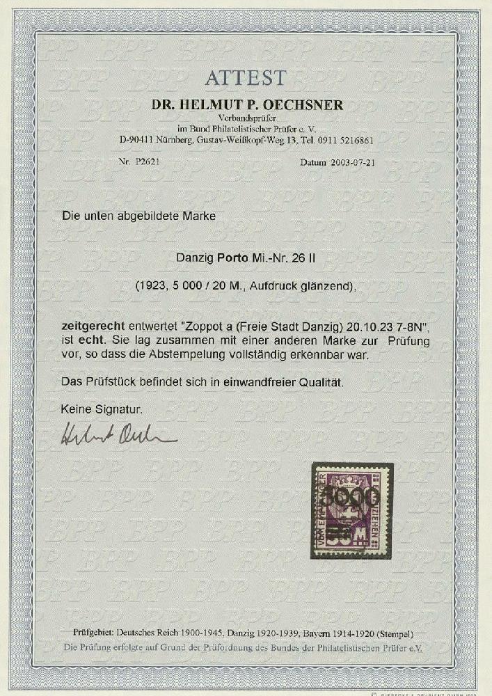 | Prüfer: | Oechsner, Helmut (BPP (Bund Philatelistischer Prüfer)) |