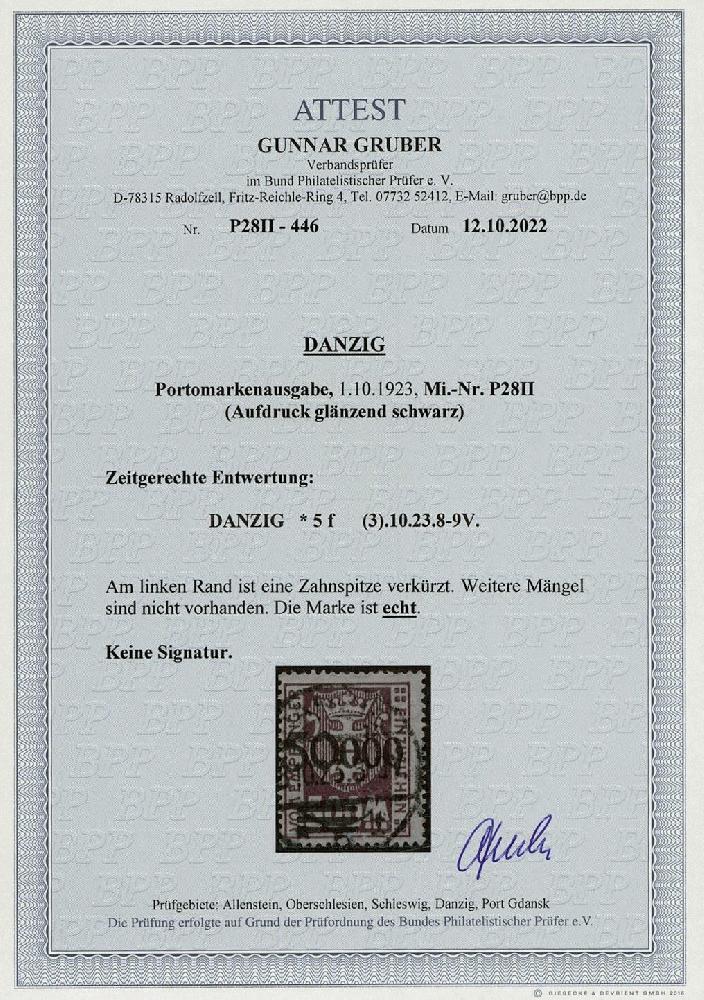 | Prüfer: | Gruber, Gunnar (BPP (Bund Philatelistischer Prüfer)) |