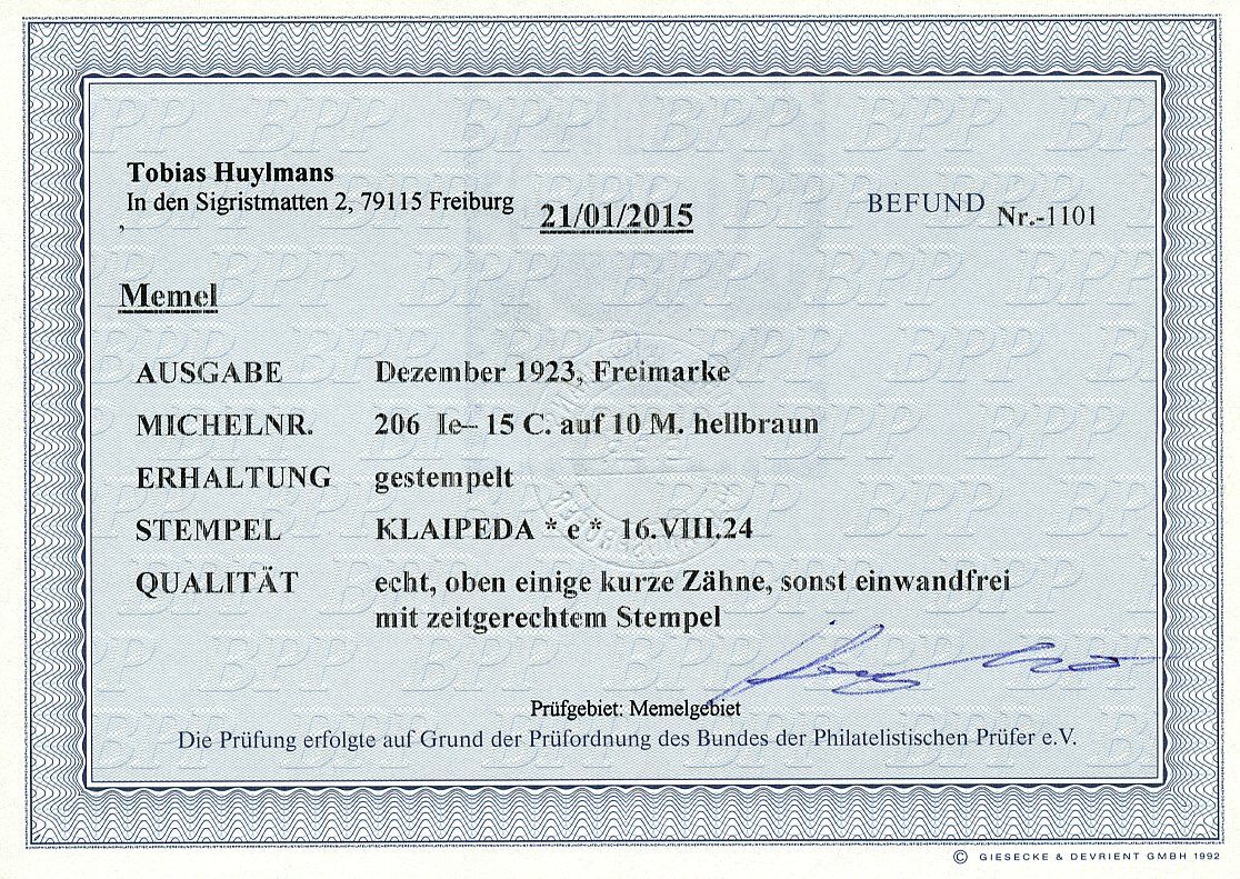 | Prüfer: | Huylmans, Tobias (BPP (Bund Philatelistischer Prüfer)) |
