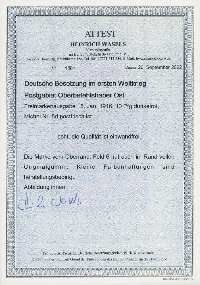 | Prüfgebiet: | Deutsche Besetzung WK 1 Postgebiet Ober Ost |