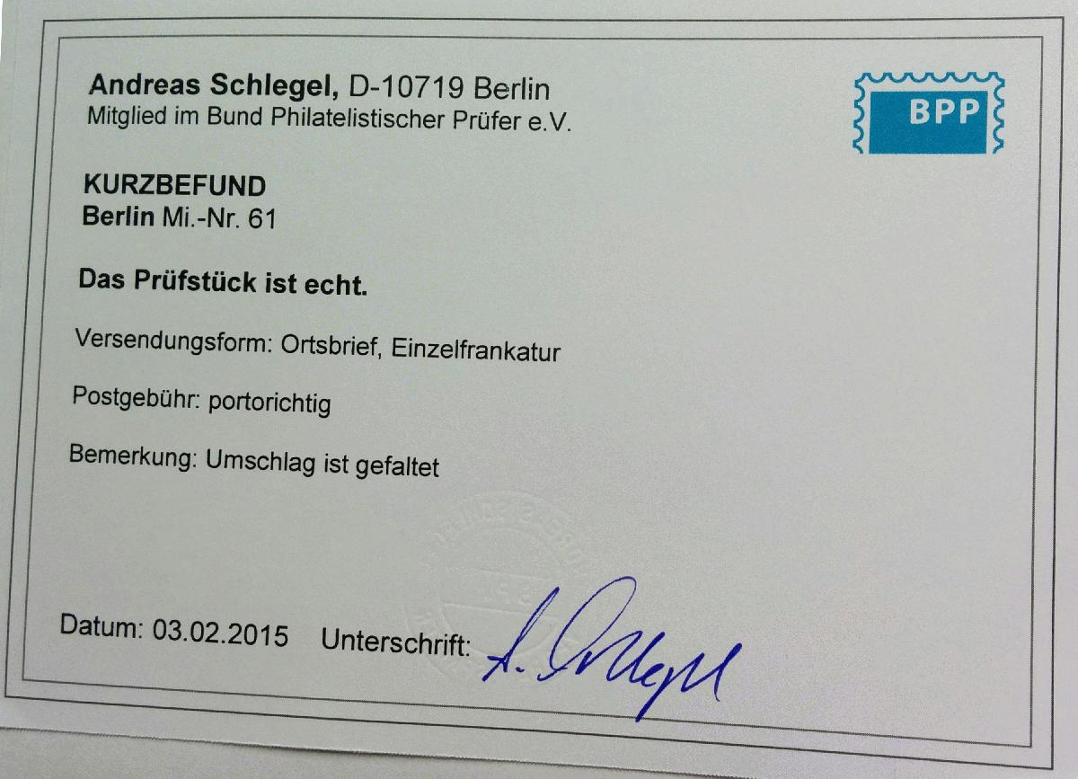 | Prüfer: | Schlegel, Andreas (BPP (Bund Philatelistischer Prüfer)) |