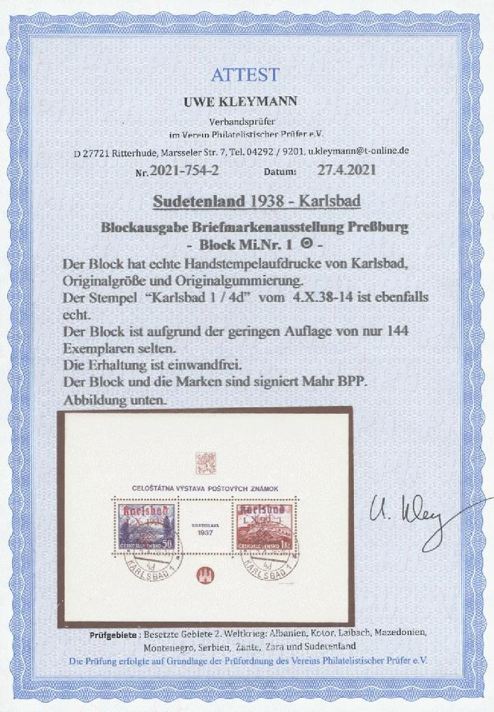 | Prüfgebiet: | Sudetenland Karlsbad Blocks |