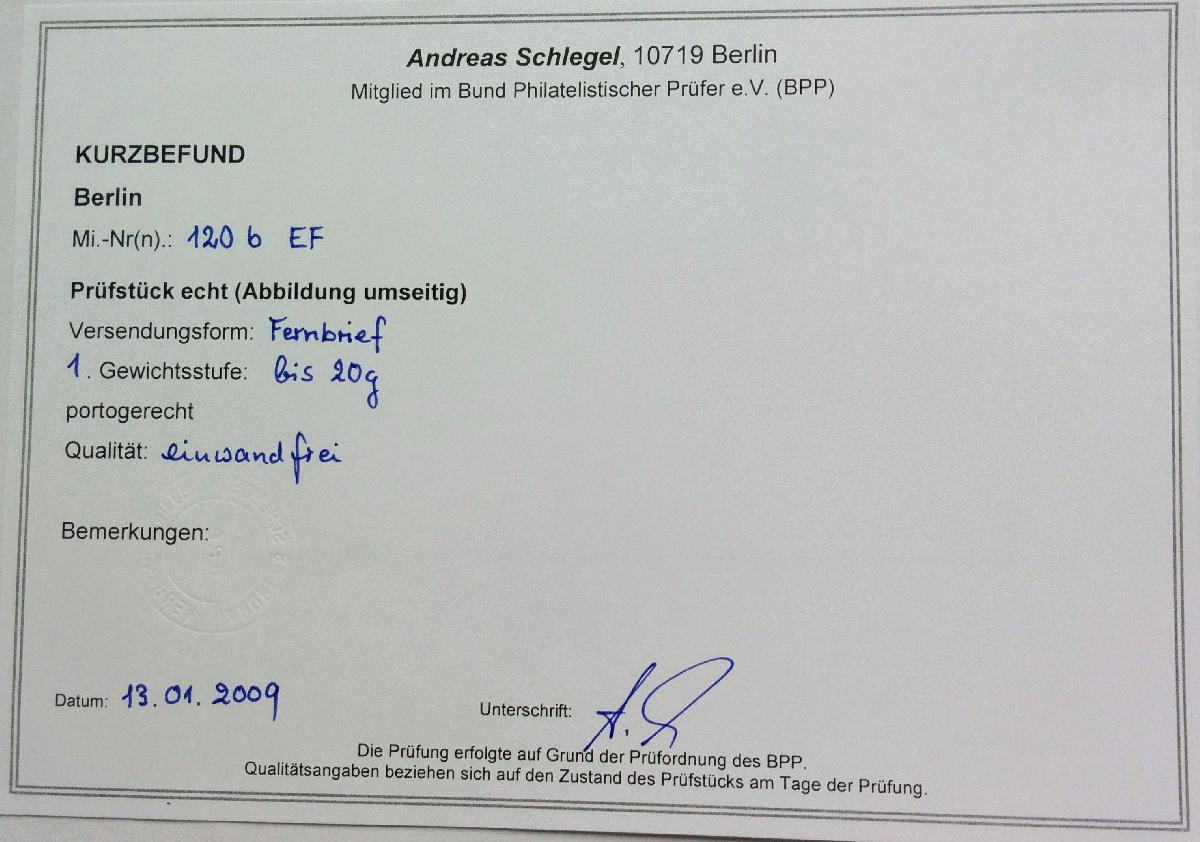 | Prüfer: | Schlegel, Andreas (BPP (Bund Philatelistischer Prüfer)) |