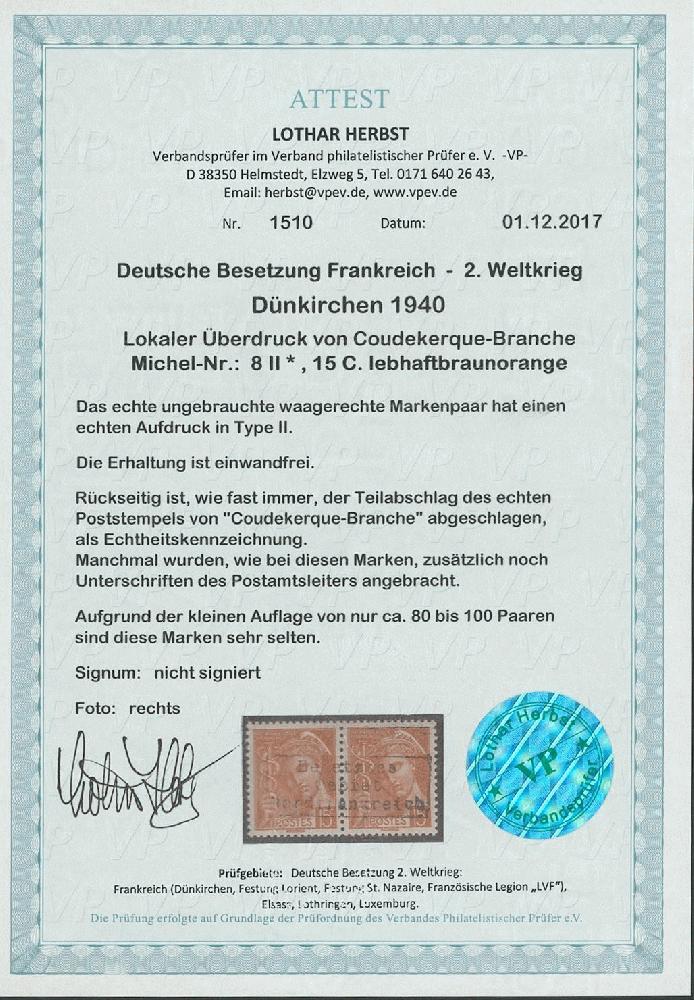 | Prüfgebiet: | Deutsche Besetzung WK 2 Frankreich Dünkirchen |