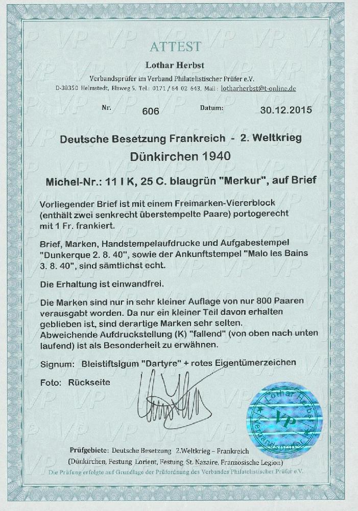 | Prüfgebiet: | Deutsche Besetzung WK 2 Frankreich Dünkirchen |