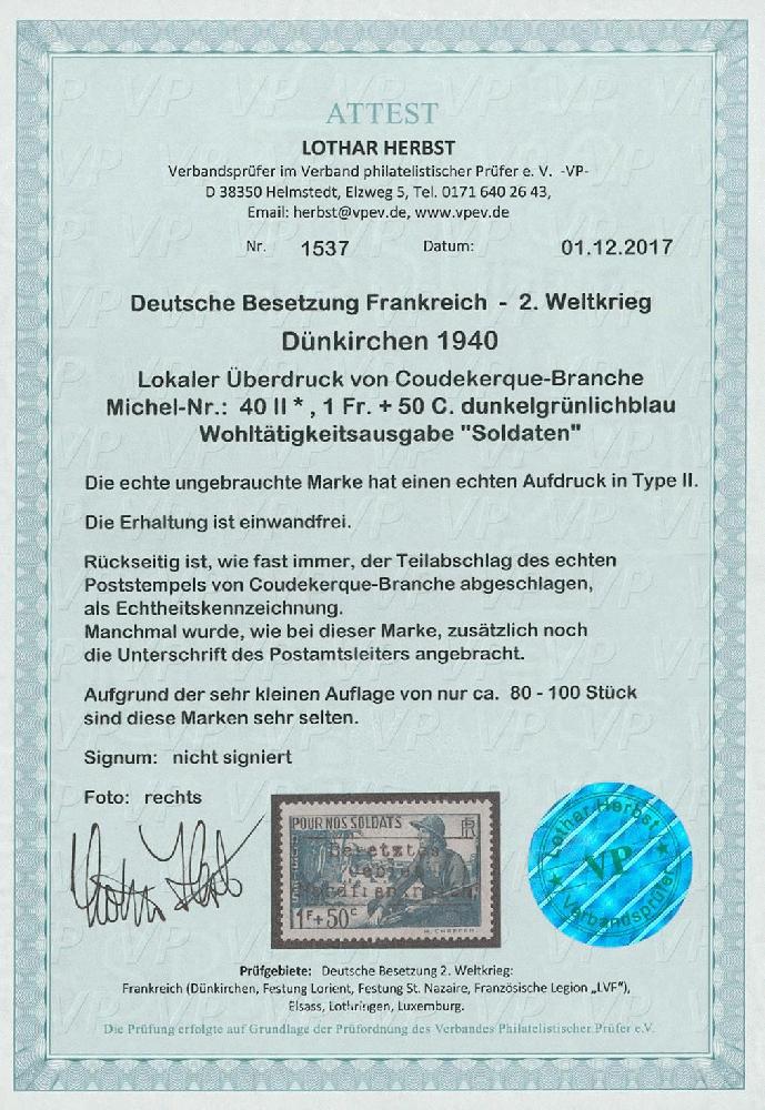 | Prüfgebiet: | Deutsche Besetzung WK 2 Frankreich Dünkirchen |