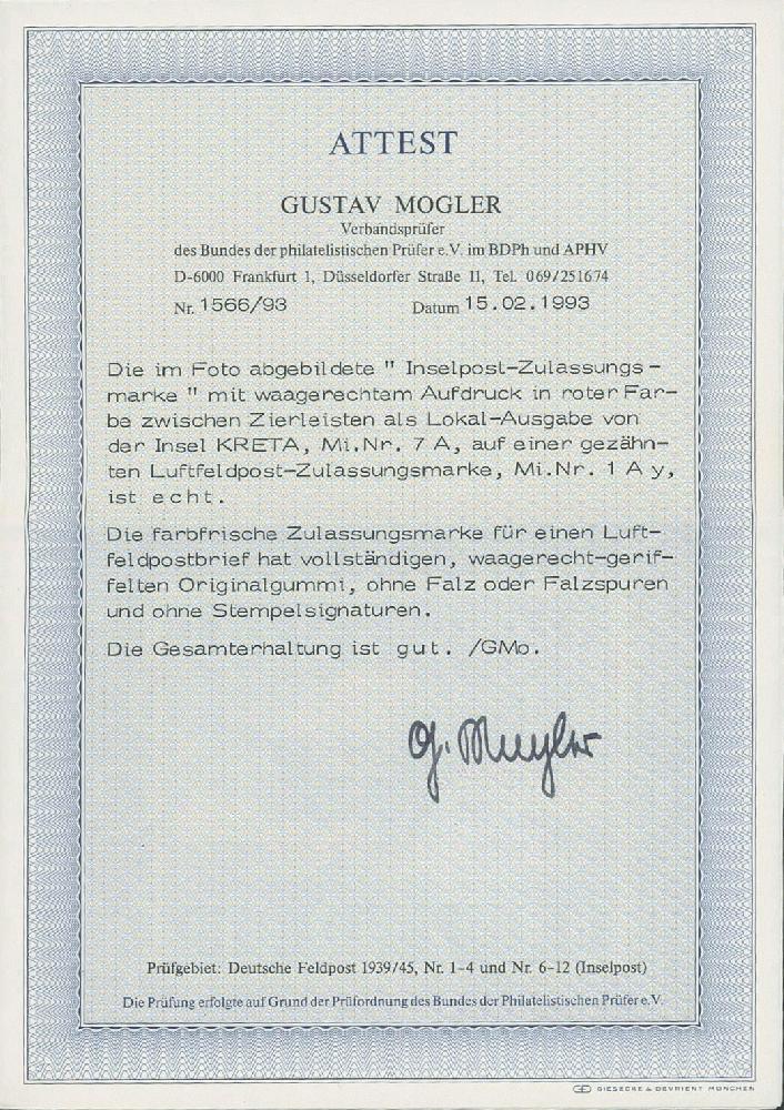 | Zusatzinformationen und Suchstichworte: | Ulrich Felzmann 177. Auktion 8. - 11. März 2023 Los 2136 Deutsche Besetzung II. WK, Feldpostmarken Kreta gezähnt in tadellos postfrischer, vollzähniger und farbfrischer Ausnahmequalität, sign. Bloch sowie Fotoattest Mogler BPP Zuschlag 220,00 EUR |