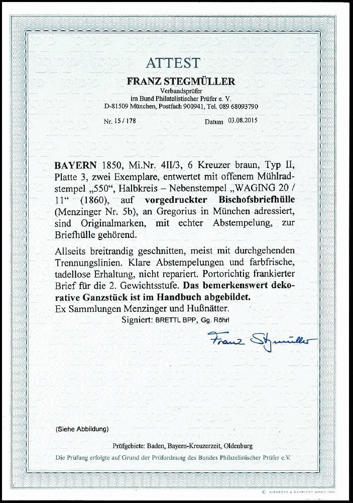 | Prüfer: | Stegmüller, Franz (BPP (Bund Philatelistischer Prüfer)) |