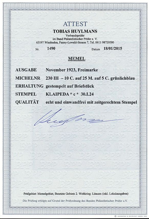 | Prüfer: | Huylmans, Tobias (BPP (Bund Philatelistischer Prüfer)) |